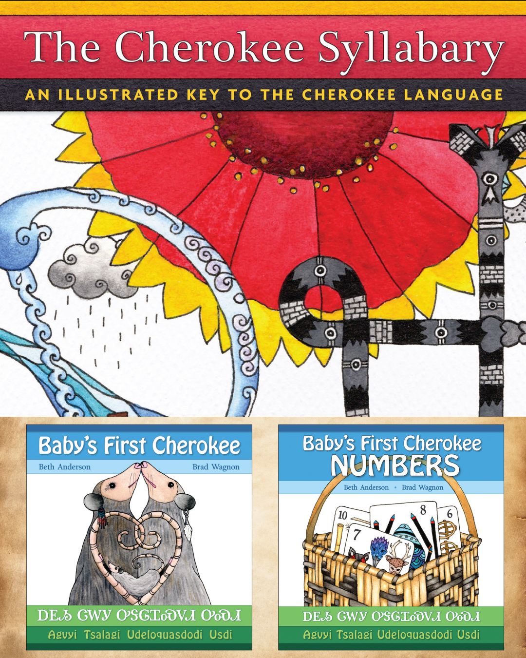 This second title in the series is a lovely addition to the growing family in the Cherokee Syllabary collection. Brad Wagnon, Cherokee author of five picture books with 7th Generation, has teamed up with Cherokee artist Beth Anderson of Water Bird Arts, to create a series of Cherokee Syllabary books to teach the beginning learners the Cherokee Syllabary.